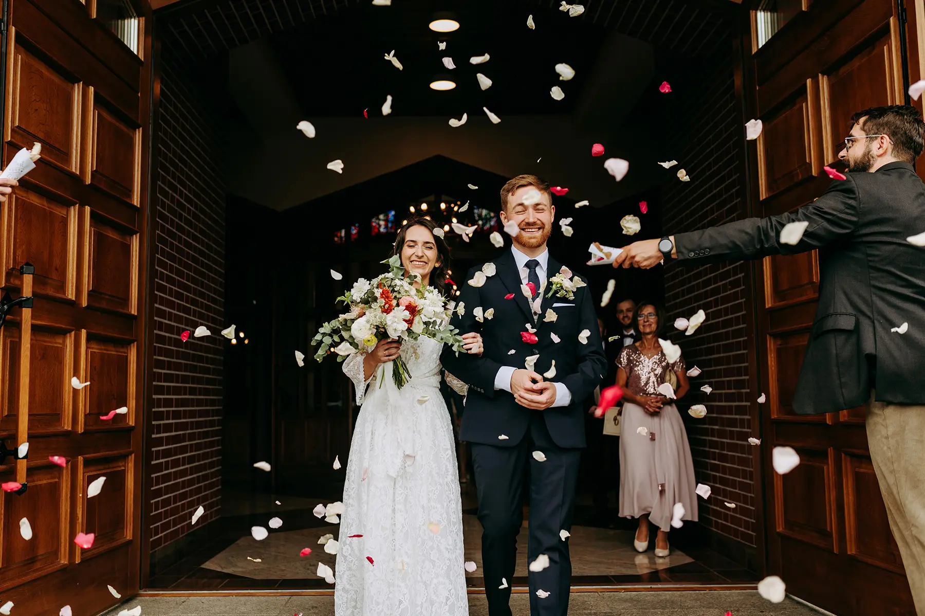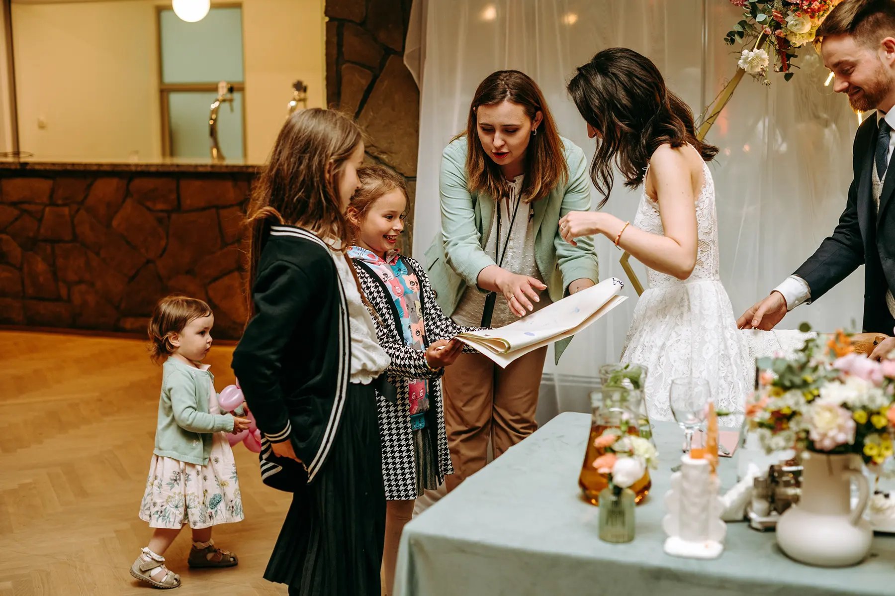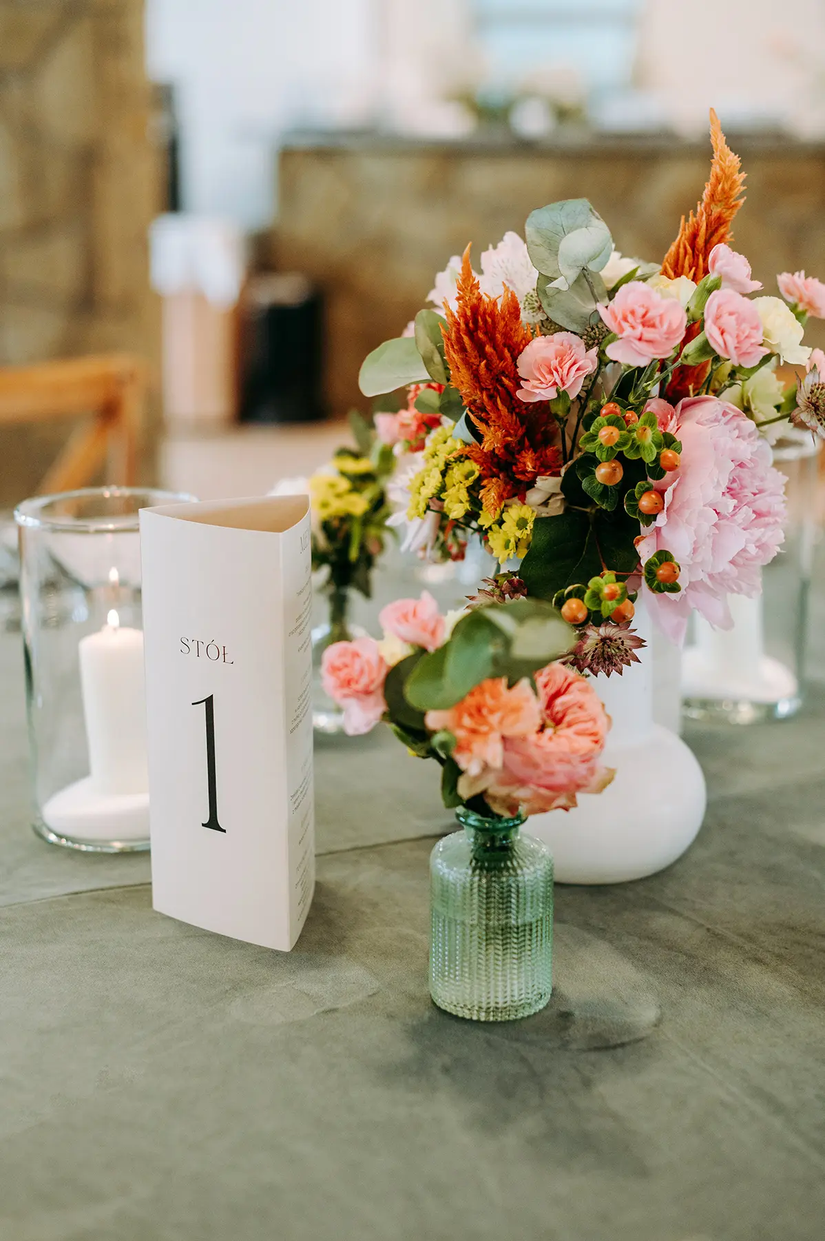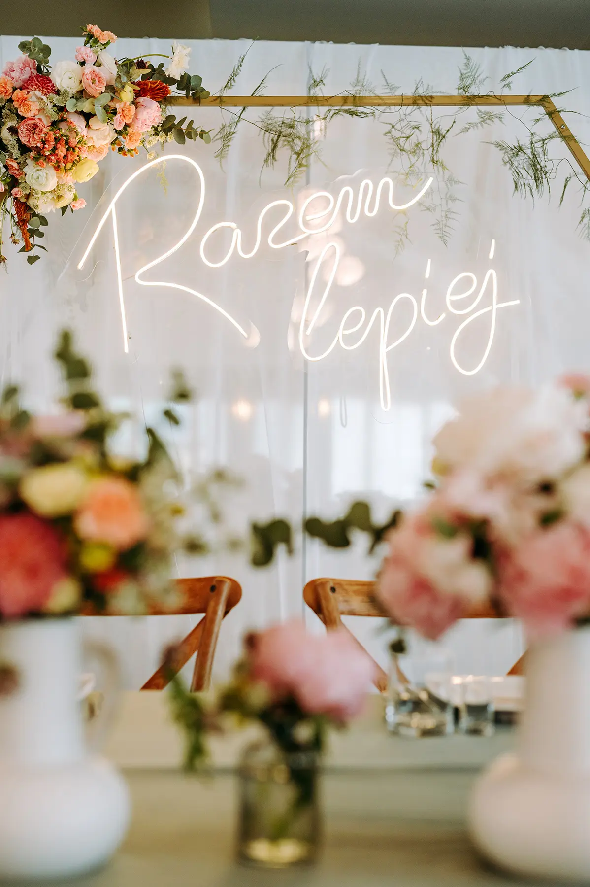 Parze zależało również, aby możliwie jak najbardziej ograniczyć ich ekspozycję i “bycie na świeczniku”- udało się podmienić lub stonować tradycyjne elementy wesela na tyle, aby nowożeńcy czuli się komfortowo. Dzięki otwartości lokalu, udało nam się nieco zejść z utartych do tej pory szlaków i wpłynąć na serwis czy sposób obsługi przyjęcia, co świetnie zadziałało, spełniając nasze oczekiwania.